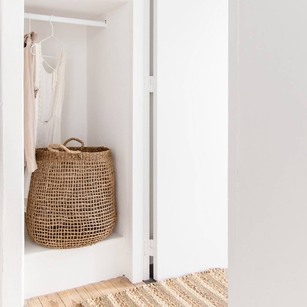 Der geflochtener Wäschekorb aus Seegras ist flexibel und passt auch in schmale Nischen. Mit Henkeln ausgestattet, ist der runde Korb Alam einfach zu transportieren, ob von Zimmer zu Zimmer oder aufgehängt an der Garderobe.