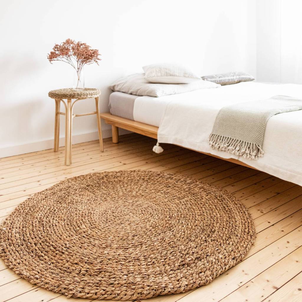 Unser Naturfaser Teppich Pantai wurde von Hand aus den Fasern der Wasserhyazinthe geflochten. Das nachhaltige Material ist sehr robust und macht den runden Teppich besonders langlebig und unempfindlich. Mit seiner warmen Farbe sorgt der Naturfaser Teppich für Gemütlichkeit in jedem Raum – besonders schön wirkt er im Kontrast zu einer hellen Einrichtung.