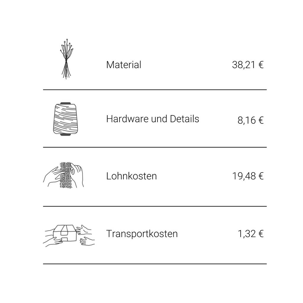 Hier siehst du, welche Kosten für die Herstellung der Leinen Bettwäsche anfallen. Hinzu kommen Kosten, die sich nicht genau auf das einzelne Produkt übertragen lassen, wie z.B. Miete, Personalkosten, Versandlager und Gemeinkosten. Es folgen Steuern und Abgaben. Am Beispiel des Bettwäsche Sets 155 x 220 cm siehst du in der Tabelle, wie sich die Kosten für die einzelnen Produktionsschritte deiner Bettwäsche aufteilen.