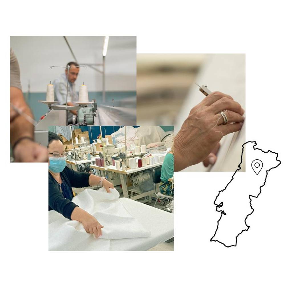 Bruno, einer der Mitarbeiter, erzählt uns wie stolz er ist für eines der ältesten Textil-Traditionsunternehmen Portugals zu arbeiten. "Es ist schön, dass unser Handwerk so viel Wertschätzung bekommt und die Bettwäsche etwas ganz Besonderes für die Kund:innen ist", sagt er uns, während wir zu Besuch sind. Das alte Firmengebäude liegt direkt an einem Fluss, an dem früher die Webstühle vom Wasser angetrieben wurden. Das Unternehmen hat im Laufe der Zeit das Textil-Handwerk bis ins Detail perfektioniert.