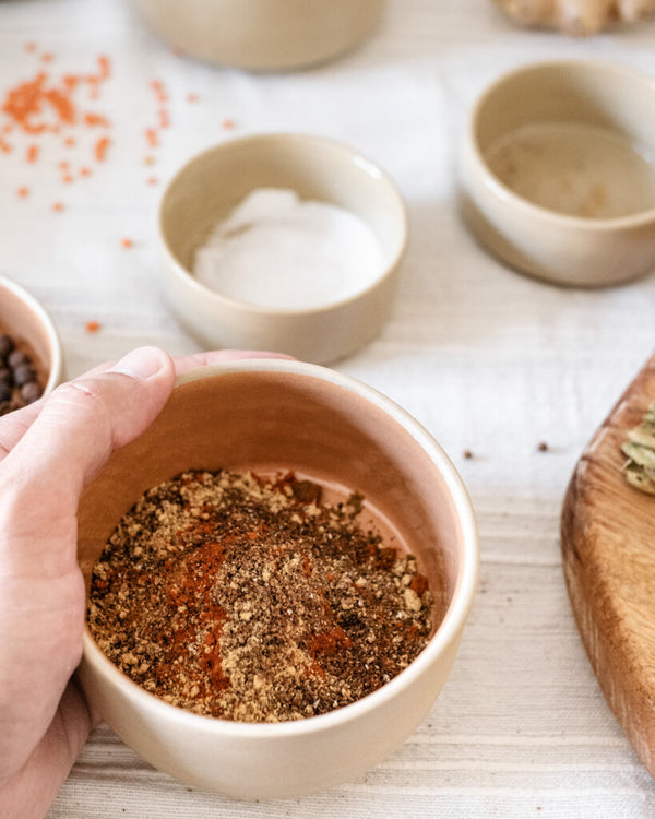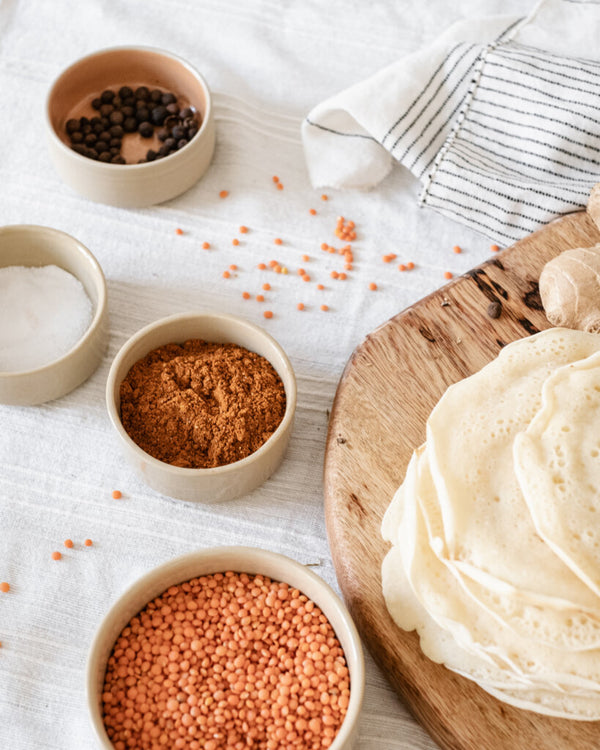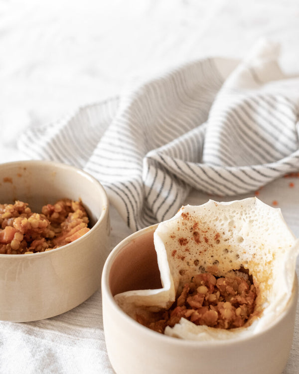 Traditionell werden in Äthiopien die Gewürzsamen ein paar Minuten lang trocken in einer Pfanne angeröstet und anschließend werden sie ausgekühlt und mit den restlichen Gewürzen gemischt. Schließlich mahlen sie die Zutaten in einer Kaffeemühle zu einer feinen Gewürzmischung. Für die vereinfachte Variante kannst du die Gewürze auch in bereits gemahlener Form zusammen mischen. Röste sie dann am besten kurz in einer Pfanne an, damit alle Gewürze ihre Aromen entfalten können. Die Mischung ist Teil vieler äthiopischer Gerichte und dient oft als Basis für den extra-würzigen Geschmack, so auch bei dem Gericht, das wir euch als nächstes vorstellen: "Misir Wot".